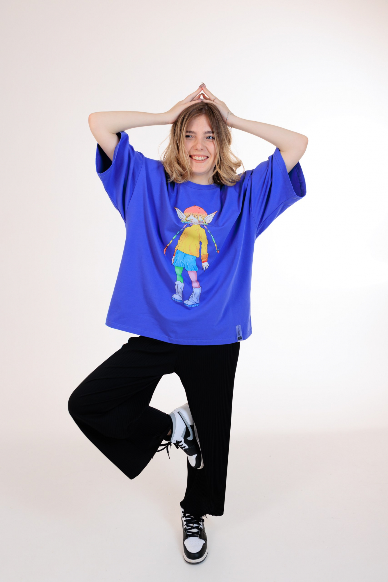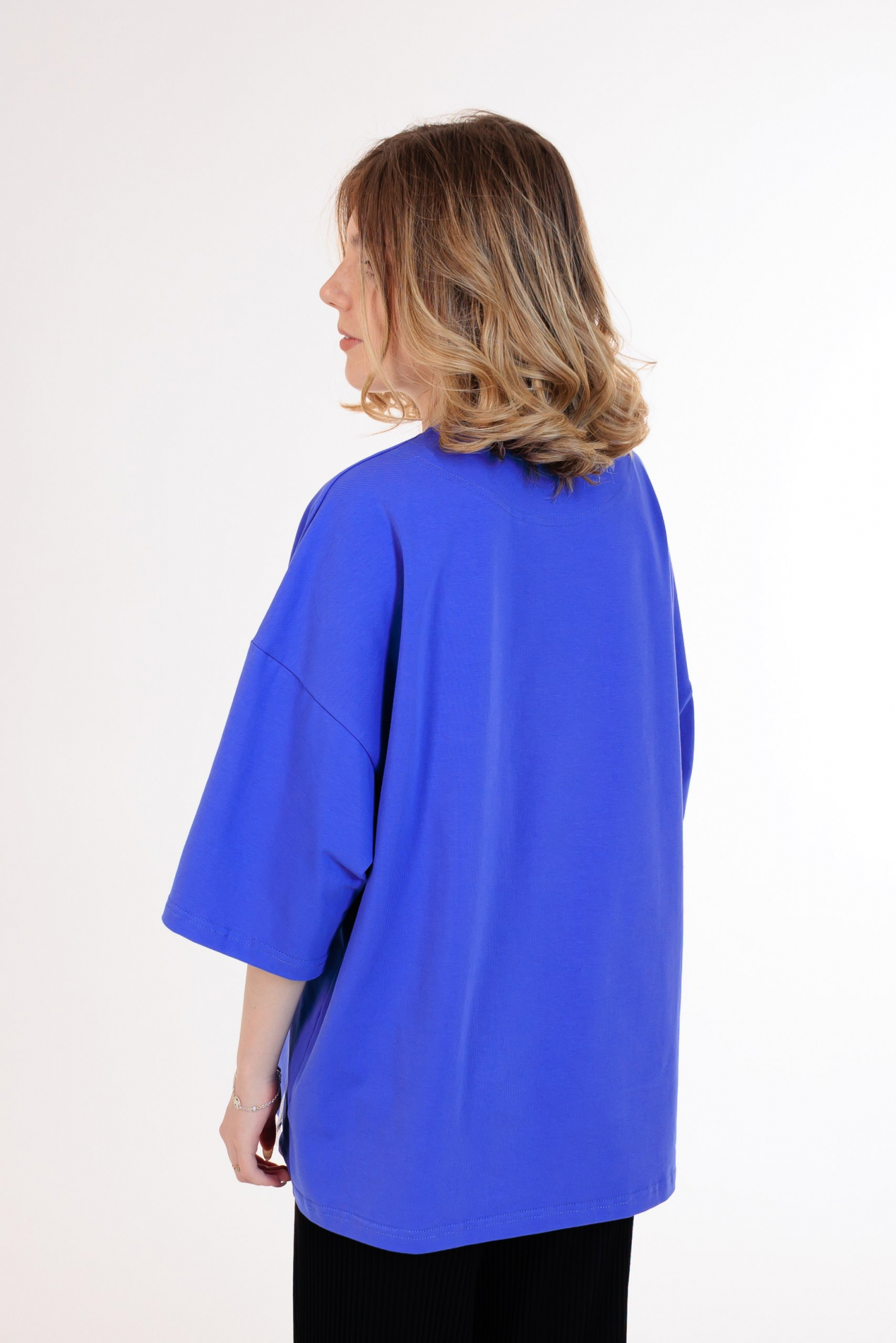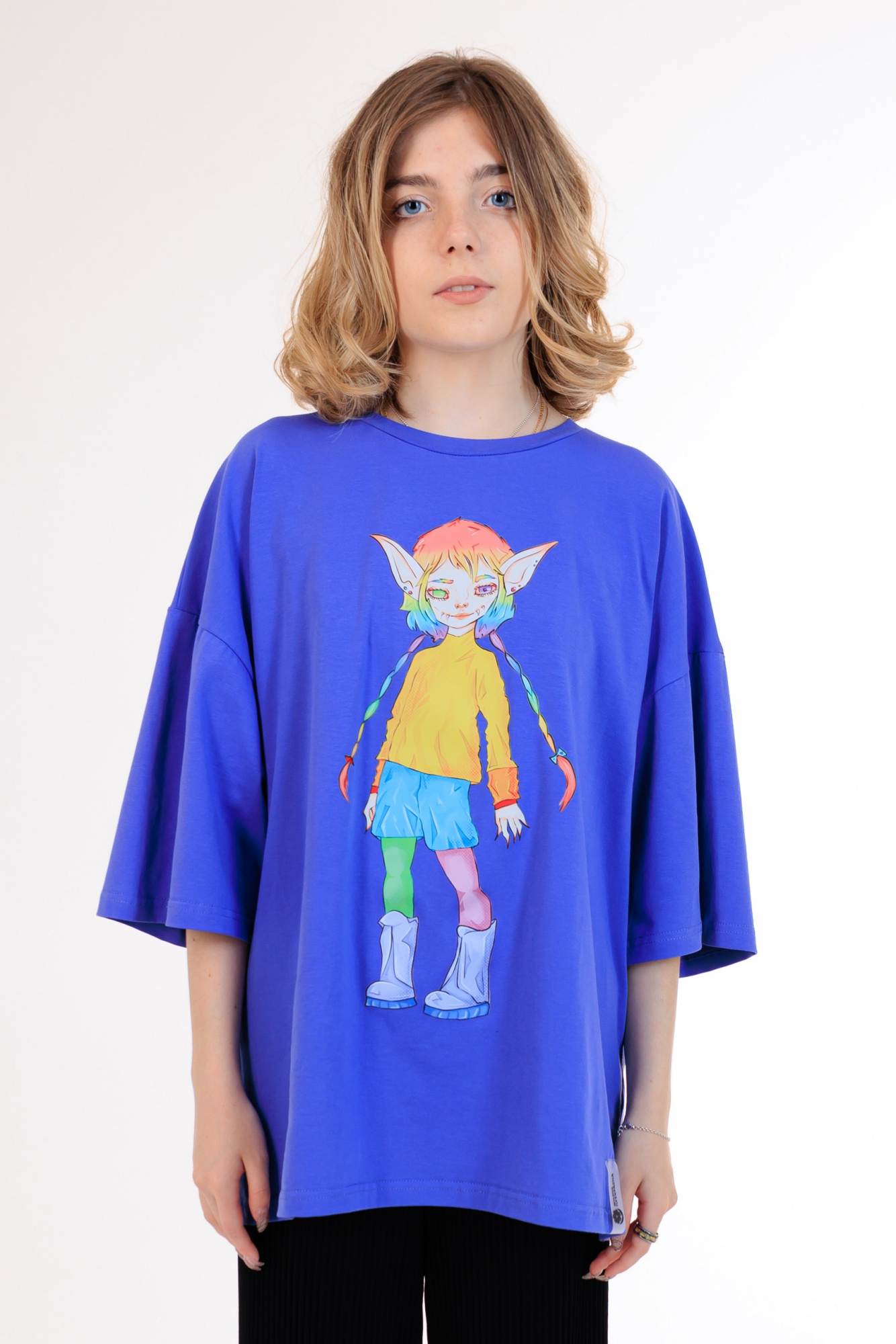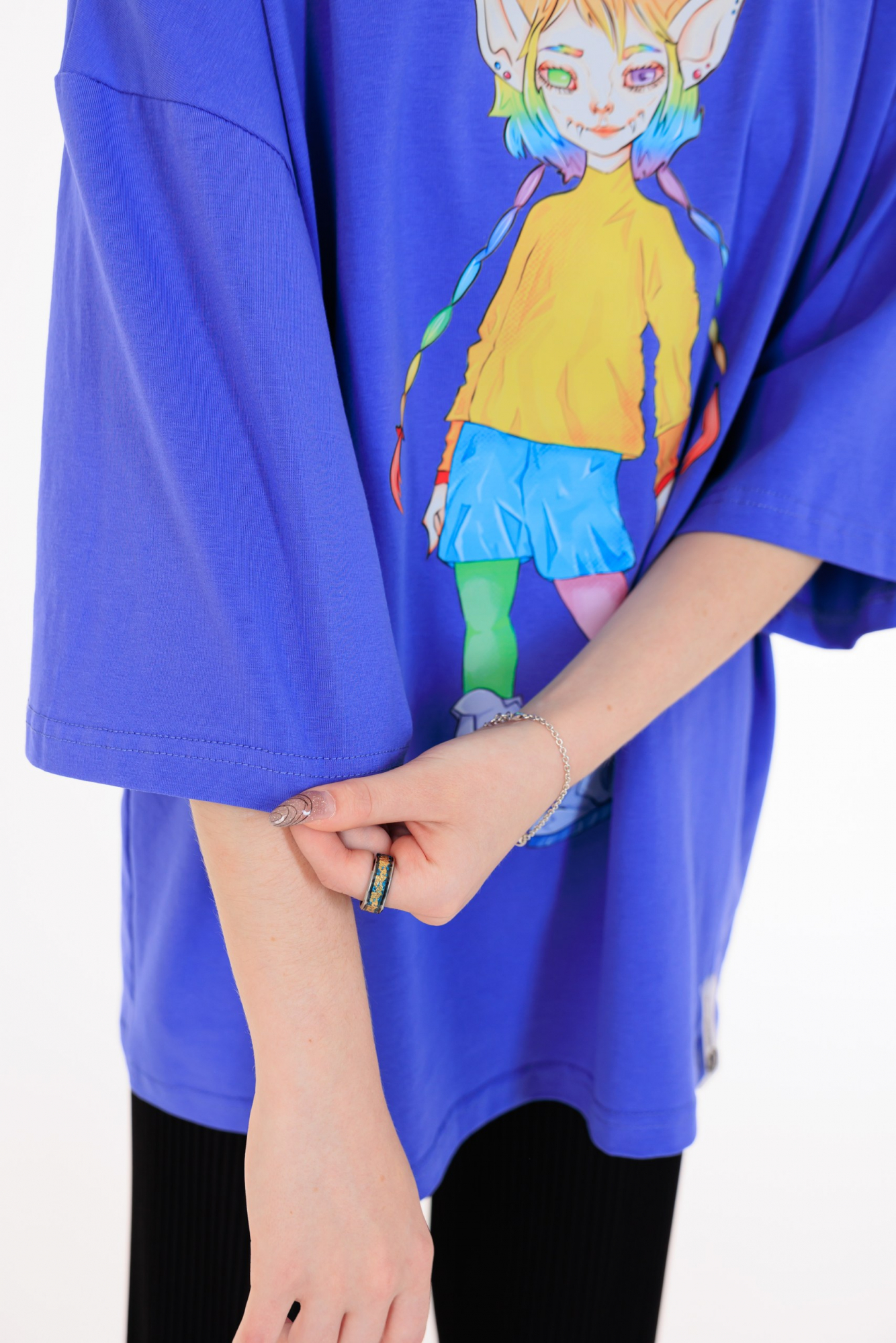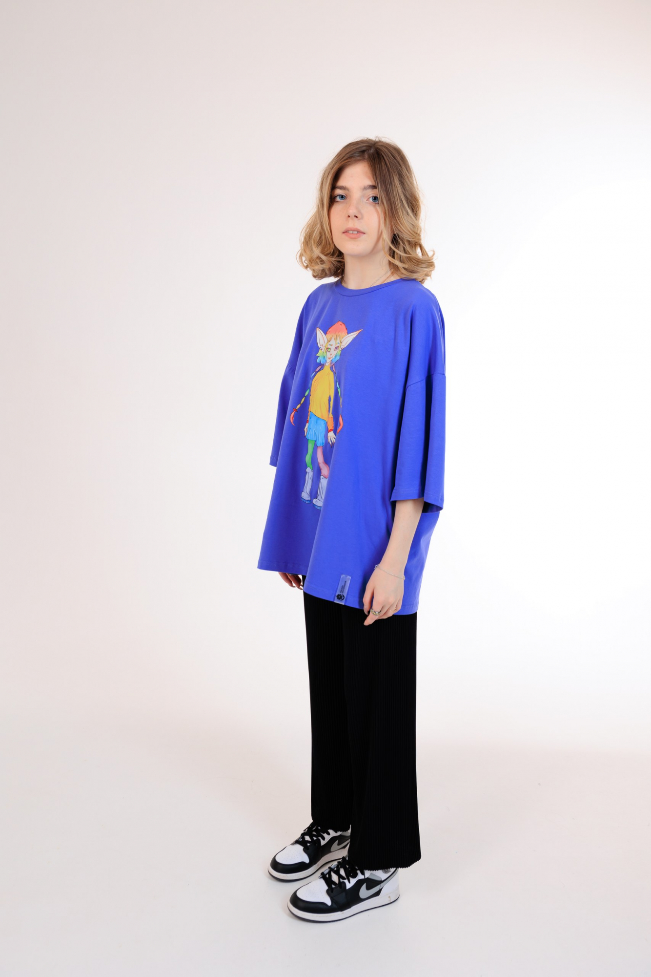 В наличии имеются футболки оверсайз размеров L и XL.
